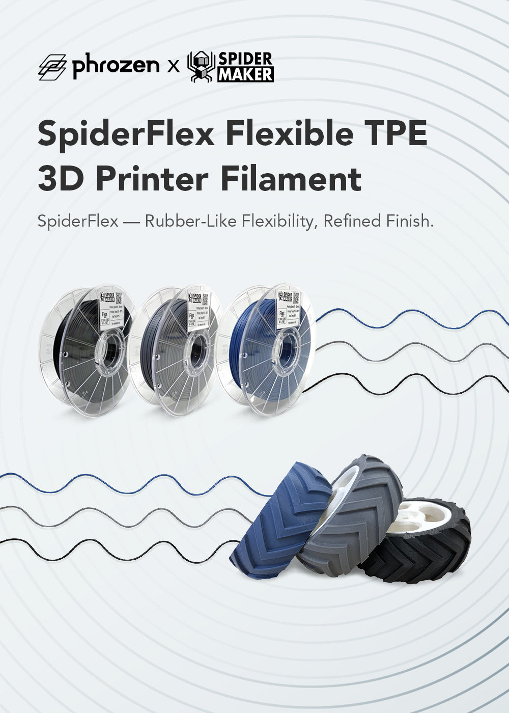 SpiderFlex offers a rubber-like texture with flexible performance—perfect for parts that bend, twist, or absorb impact with ease.