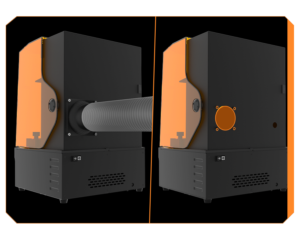 空気清浄フィルターがレジンの匂いを抑え、クリーンな作業スペースを確保します。さらに、背面の排気口から排気ダクトを接続することで、室内を快適な空気環境に整えることが可能です。
