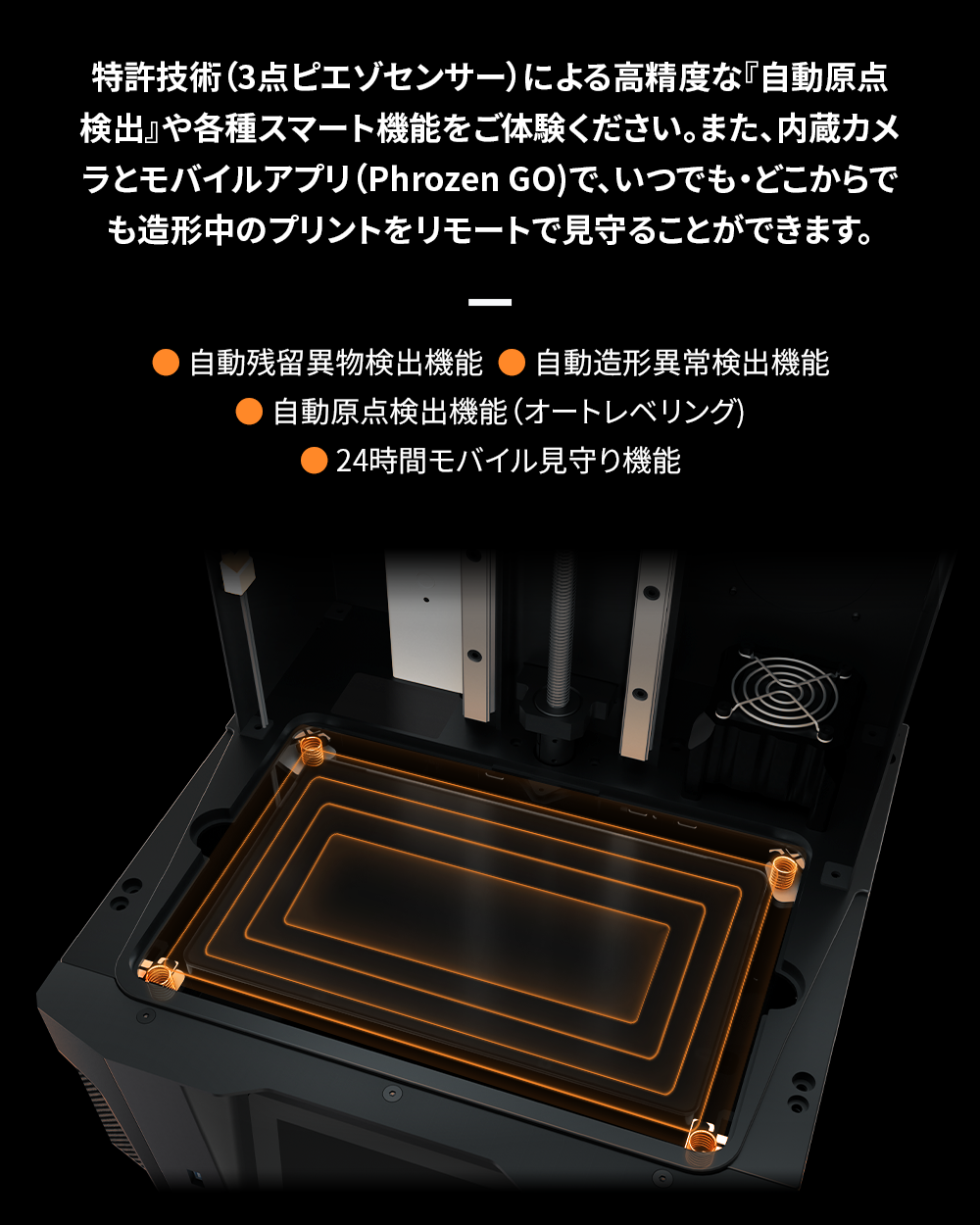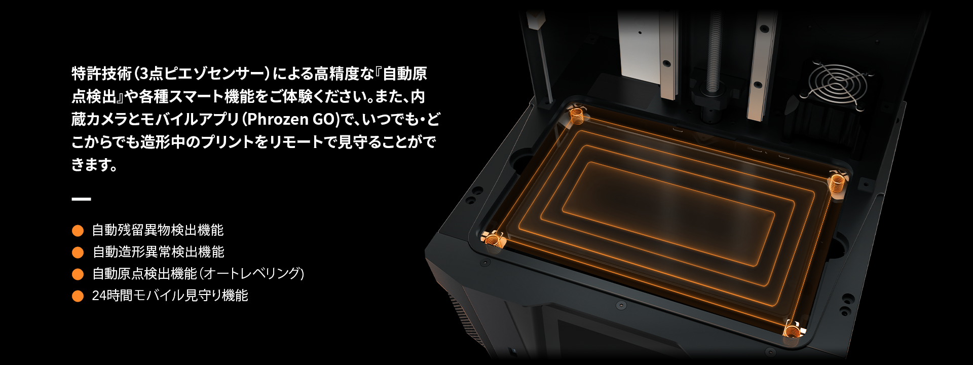 Get notified of possible failure early in both your printer and your phone (through the Phrozen GO App) when the sensors detect abnormalities during printing.