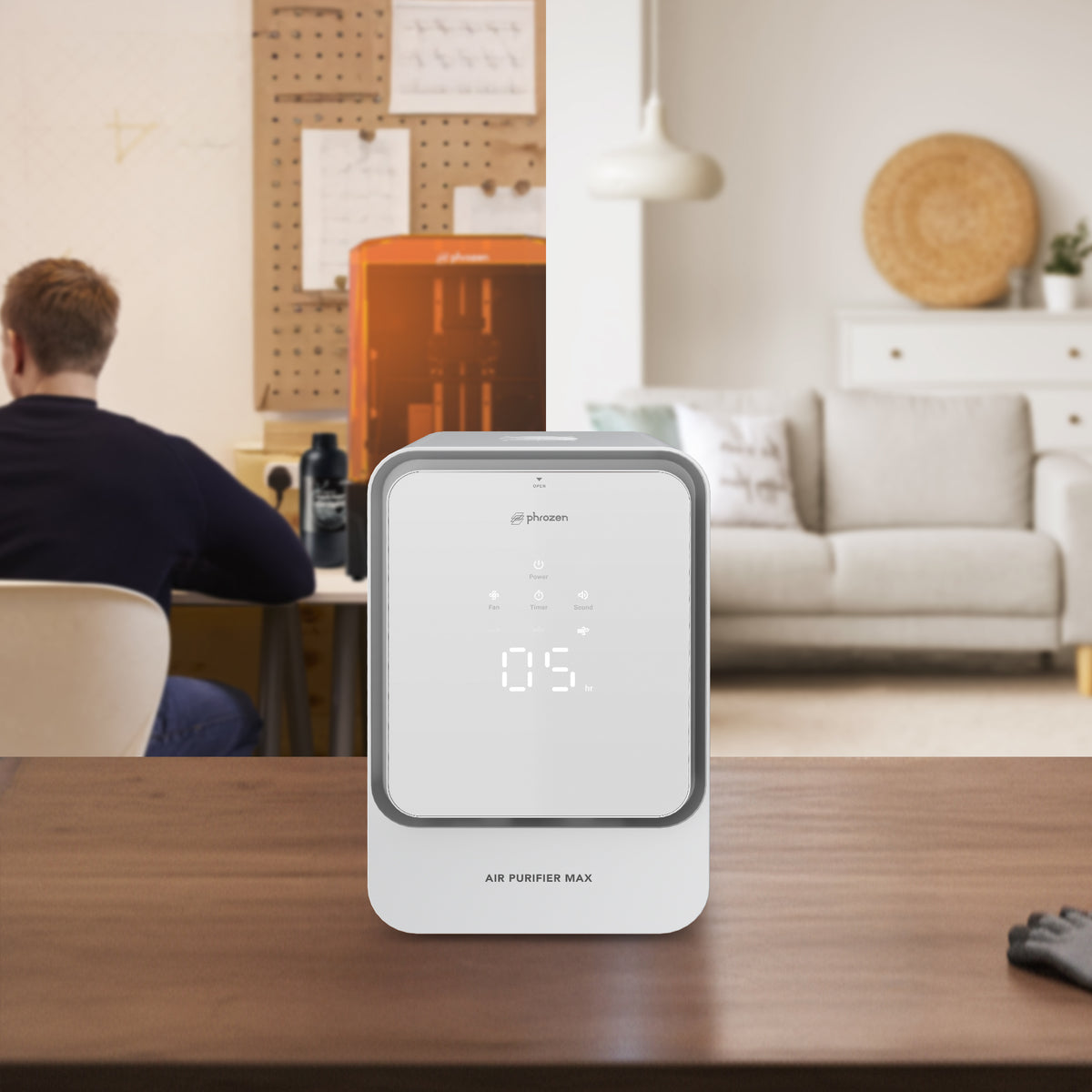 From plastic fumes to resin odors and dust, Air Purifier Max clears the air in one simple step.