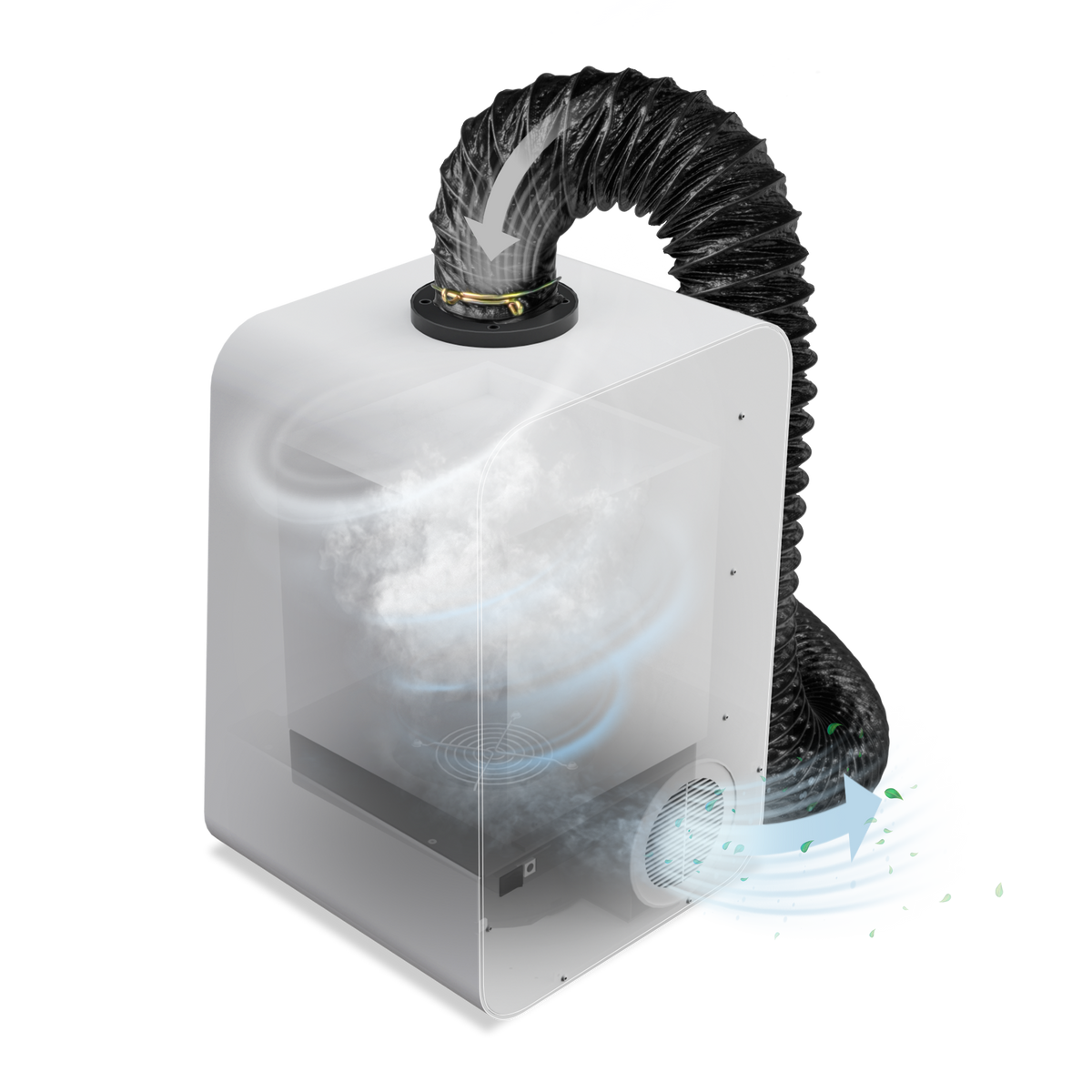 Hook the hose right to your printer, so odors, dust, and VOCs never even hit the air you breathe.