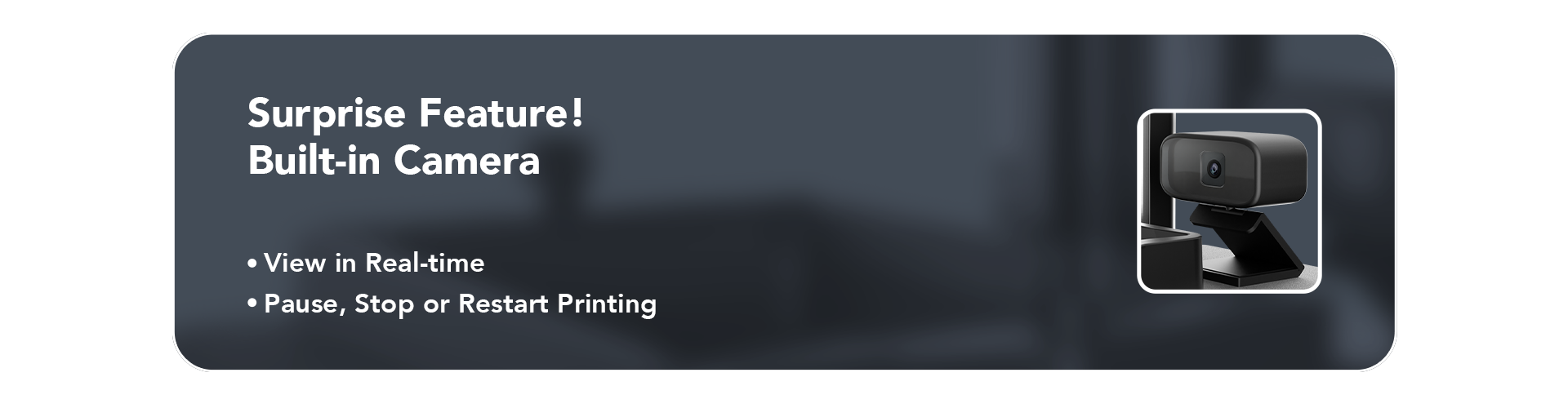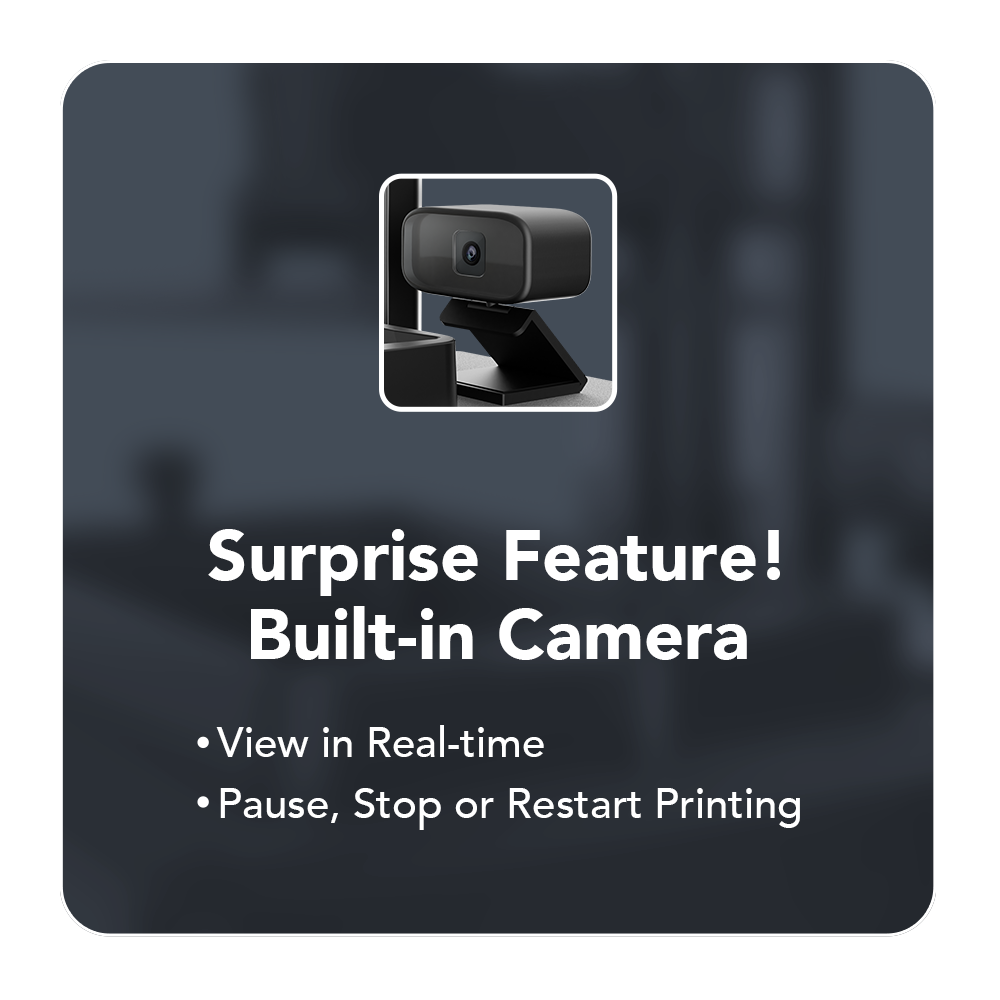 Our new built-in camera enables you to check on printing progress through your smartphone anytime, anywhere. You can stop printing immediately if something goes wrong. The camera app will be released in December. Stay tuned!