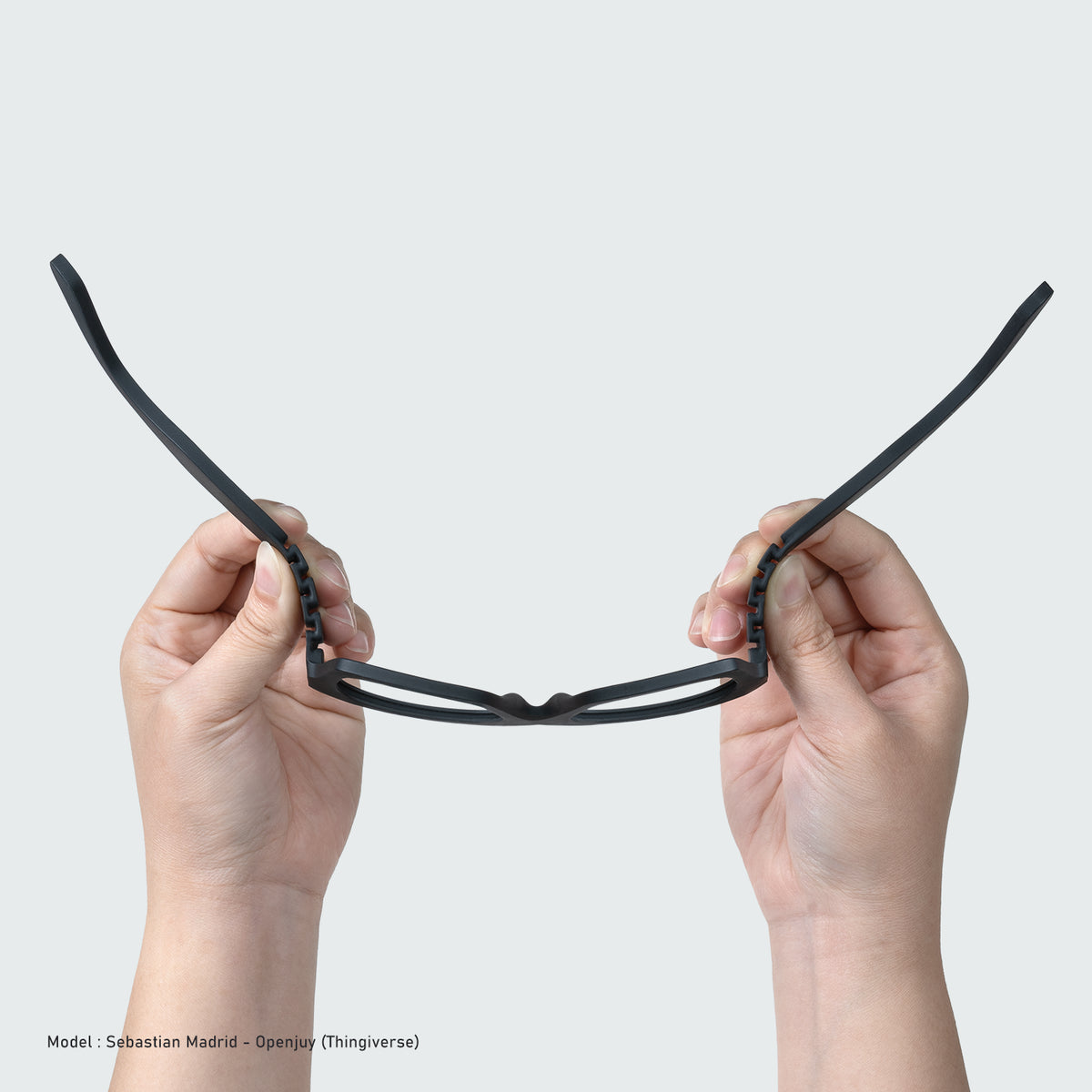 Test your flex glasses frame before production with a prototype perfectly replicating the shapes, integrity, and flex of its end products.
